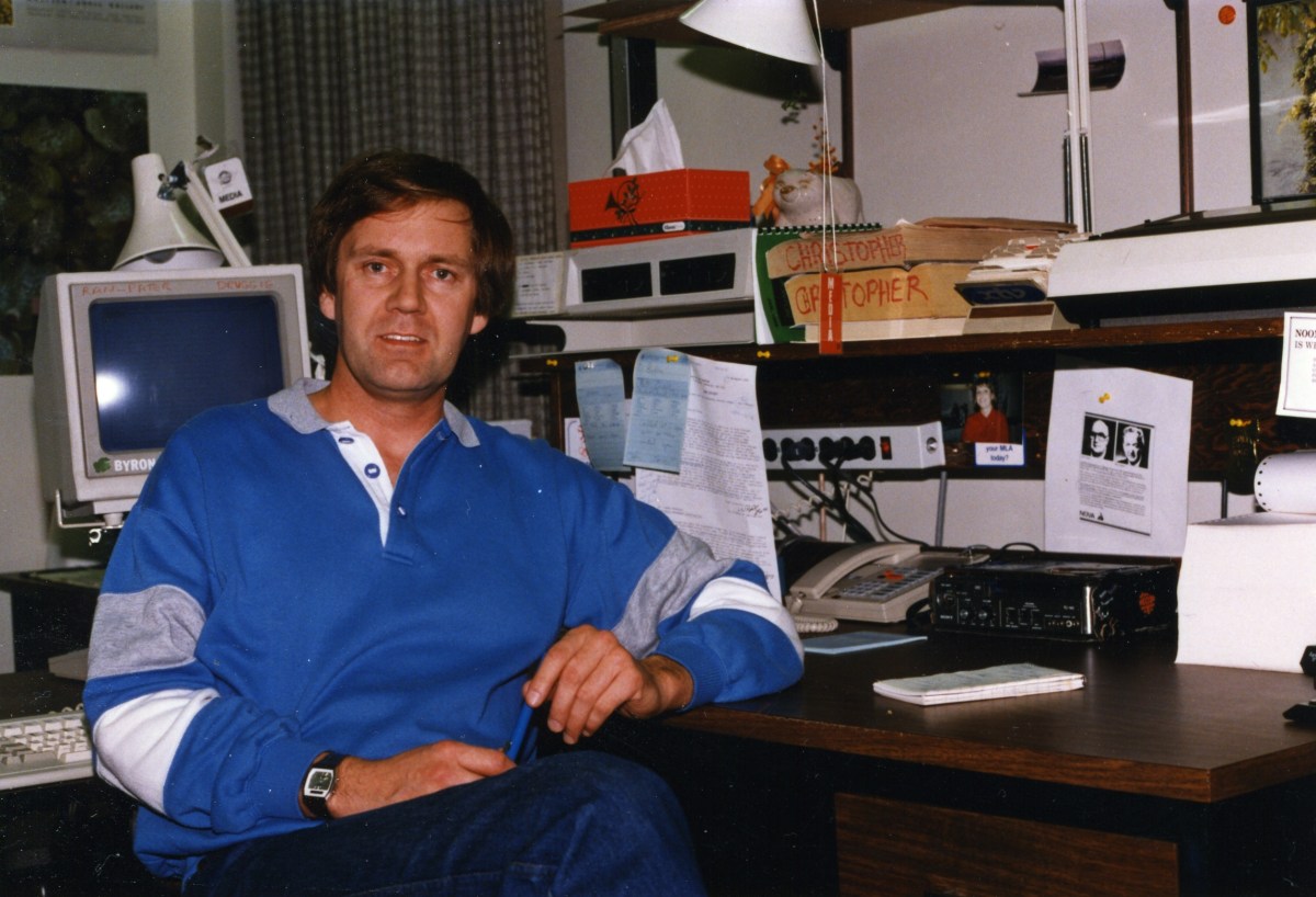 Author at his desk in the CBC Radio Newsroom in Edmonton.