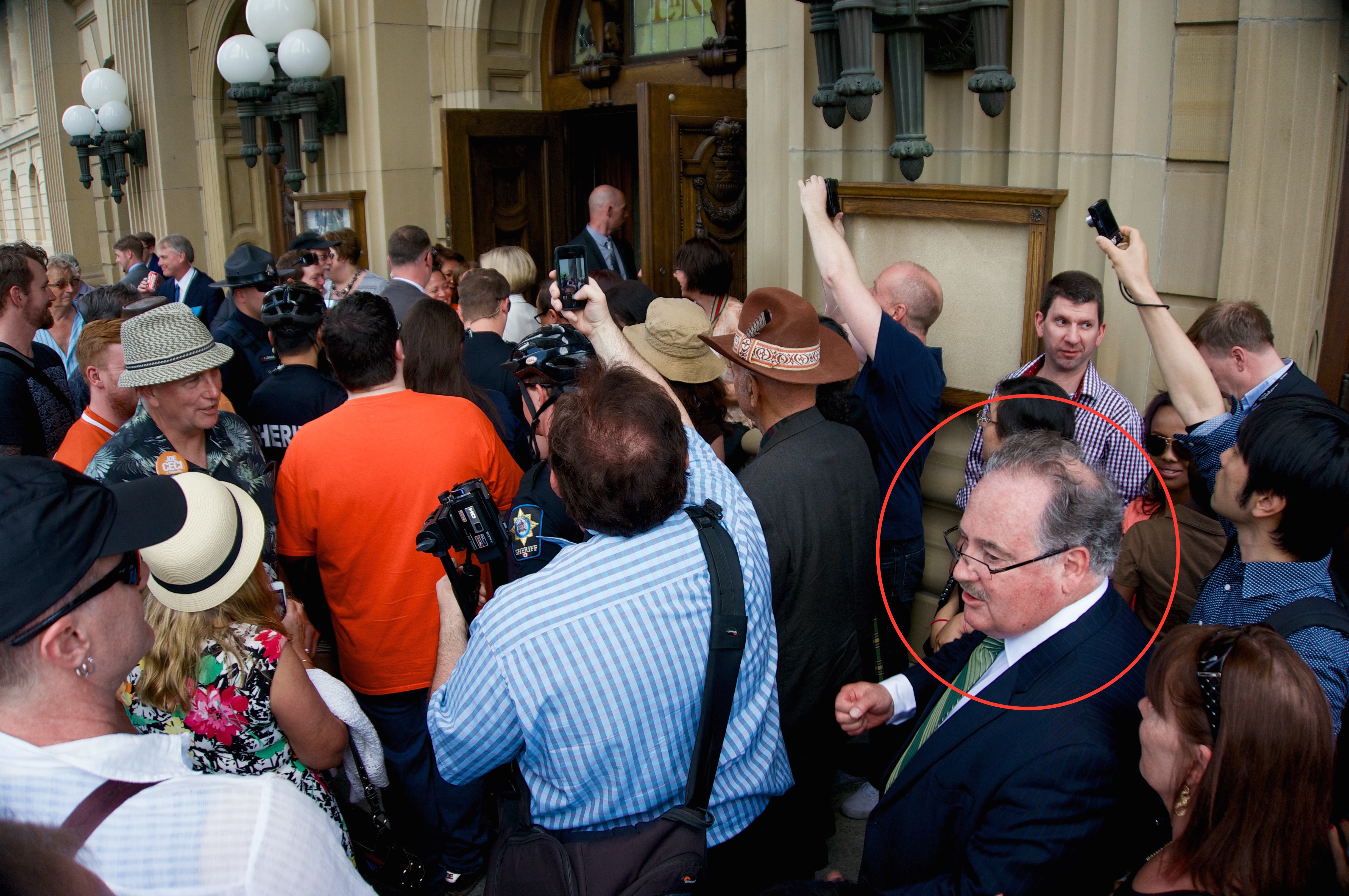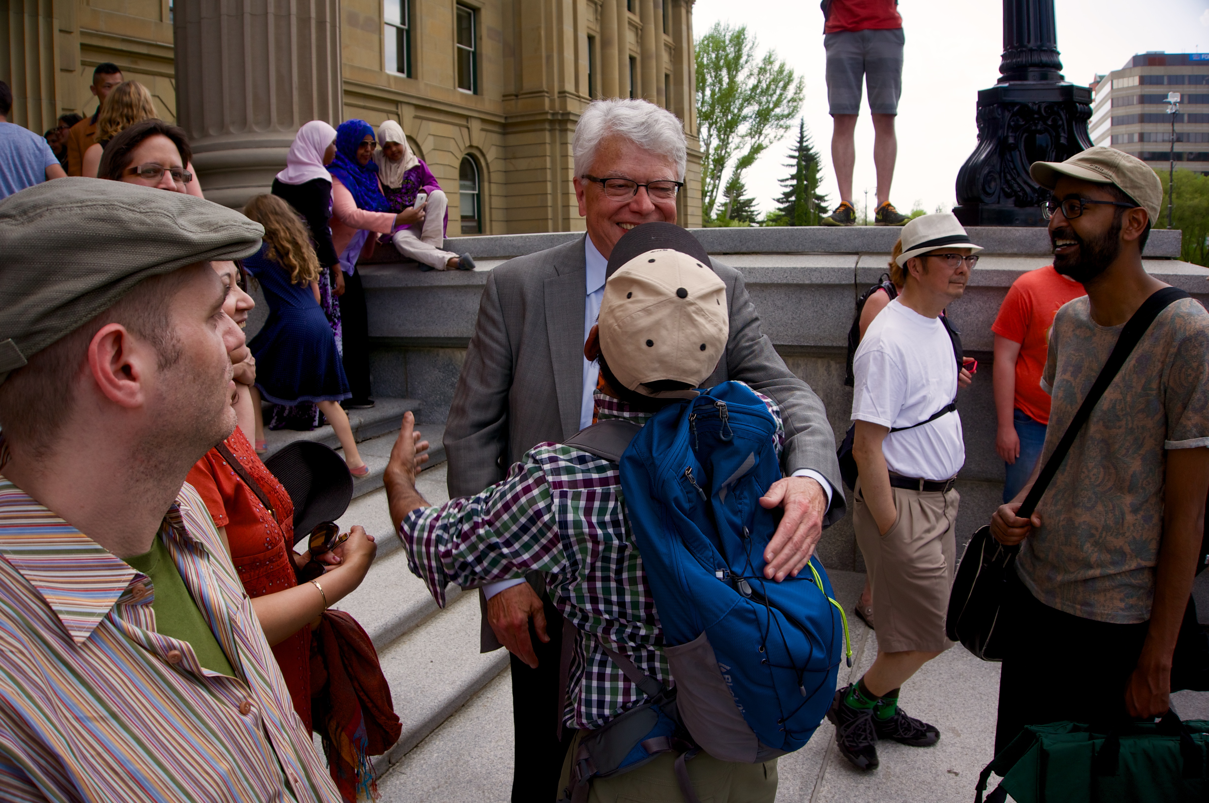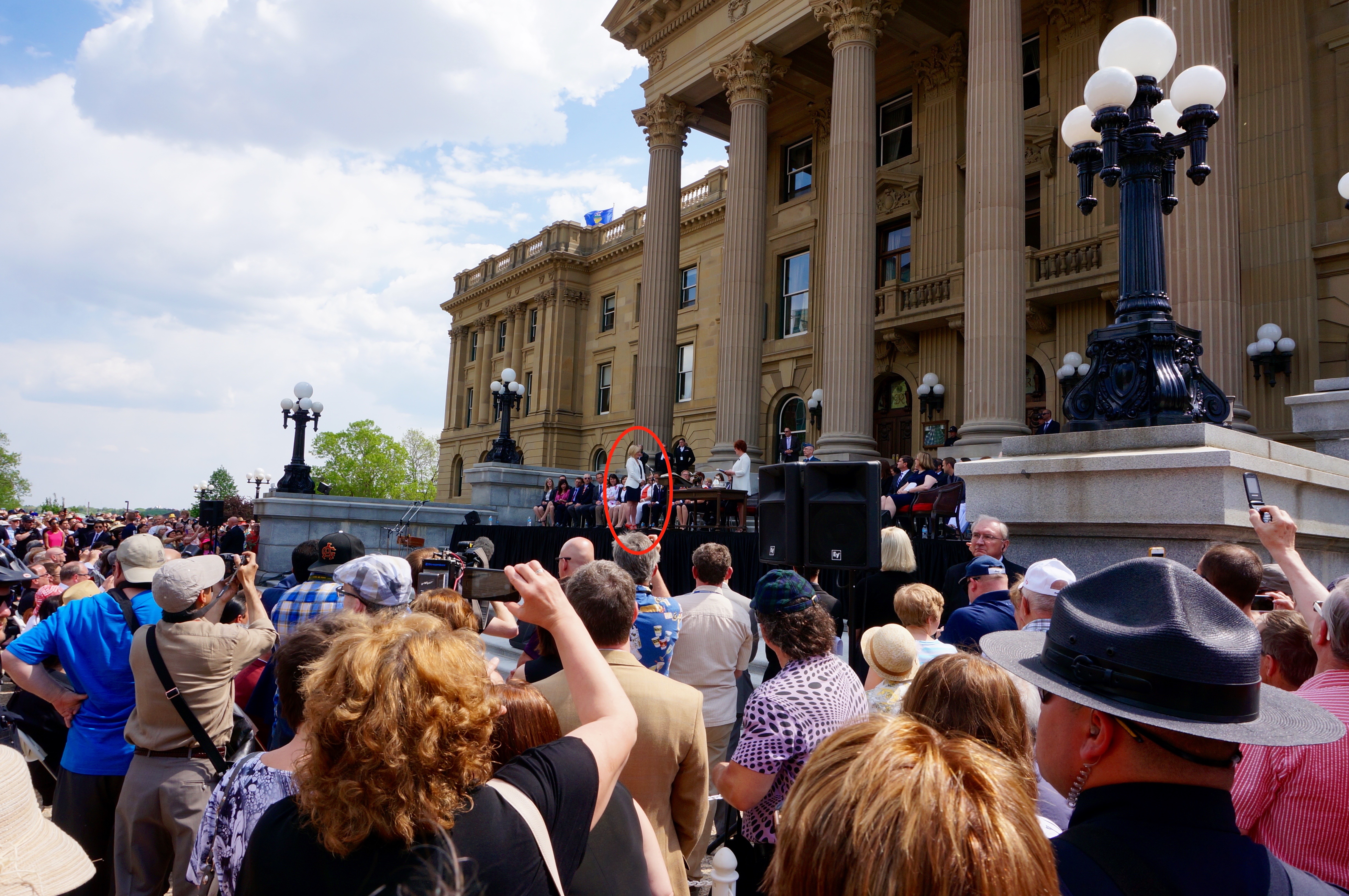 Alberta’s new cabinet leaves the steps of the Legislature to ‘work’ the crowd. Nice touch. [Click to enlarge] [13]