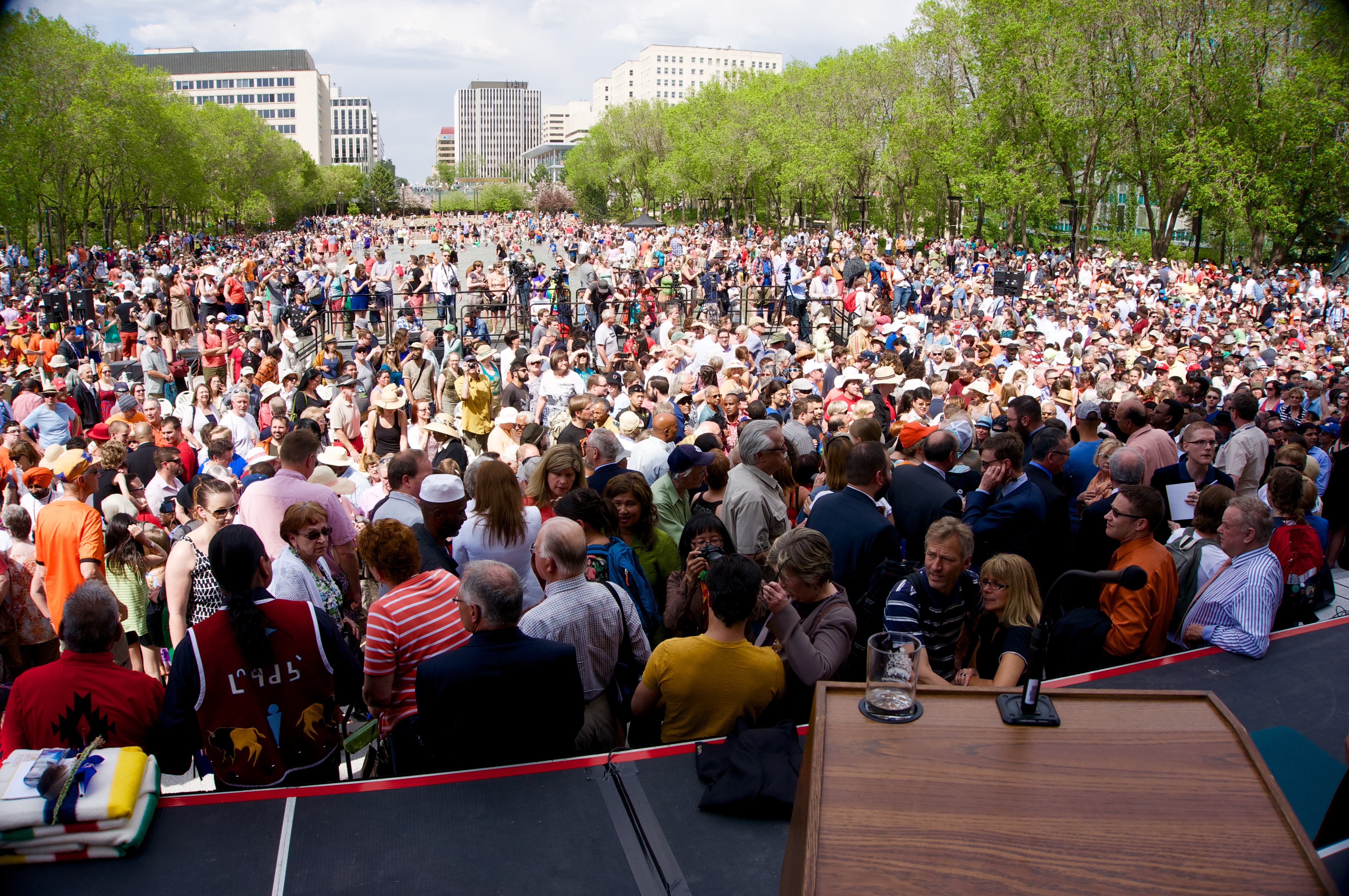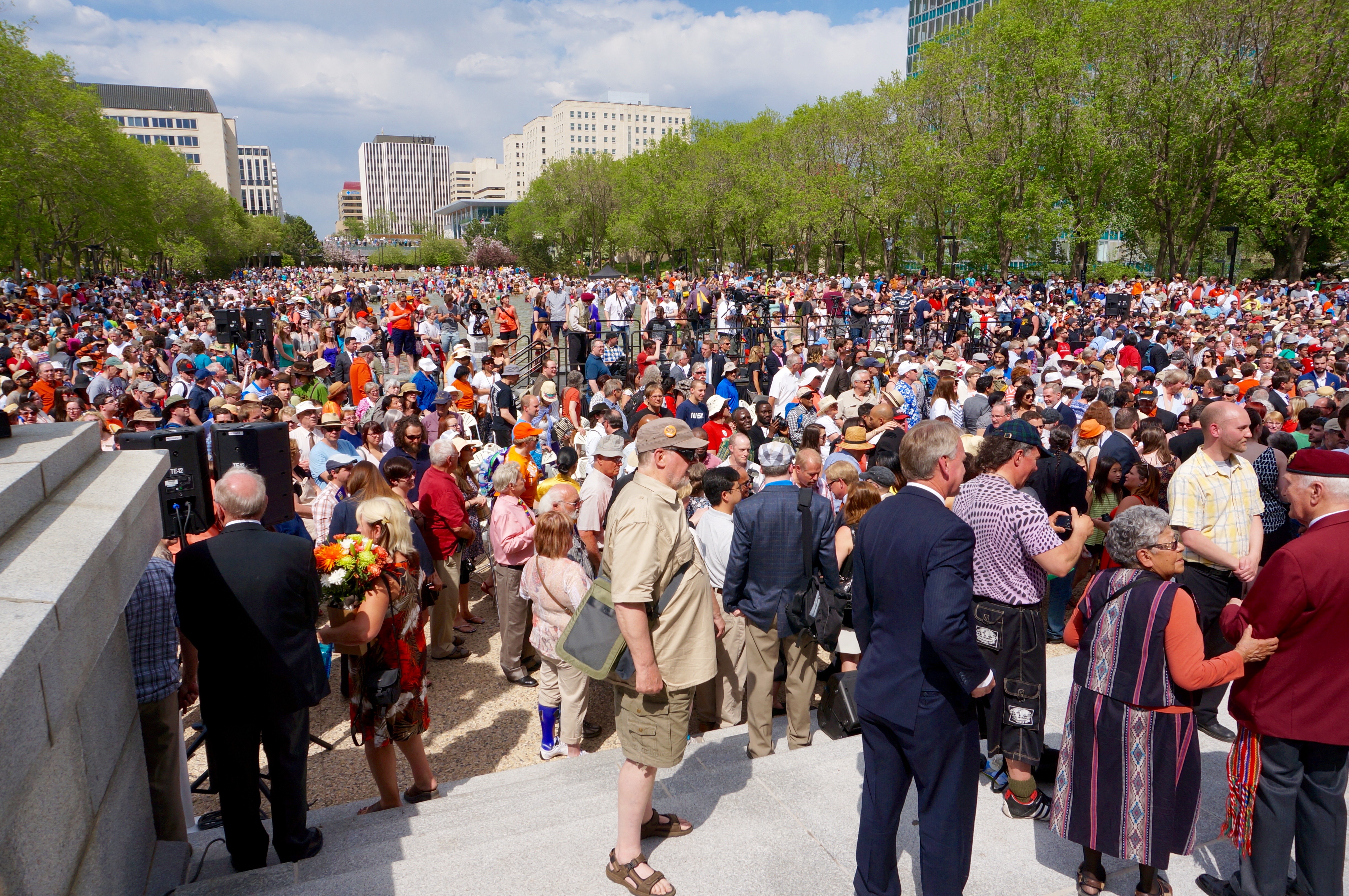 View from the front steps of the Legislative Building. These people didn’t just vote NDP, they voted ‘Change.’ [Click to enlarge] [17]