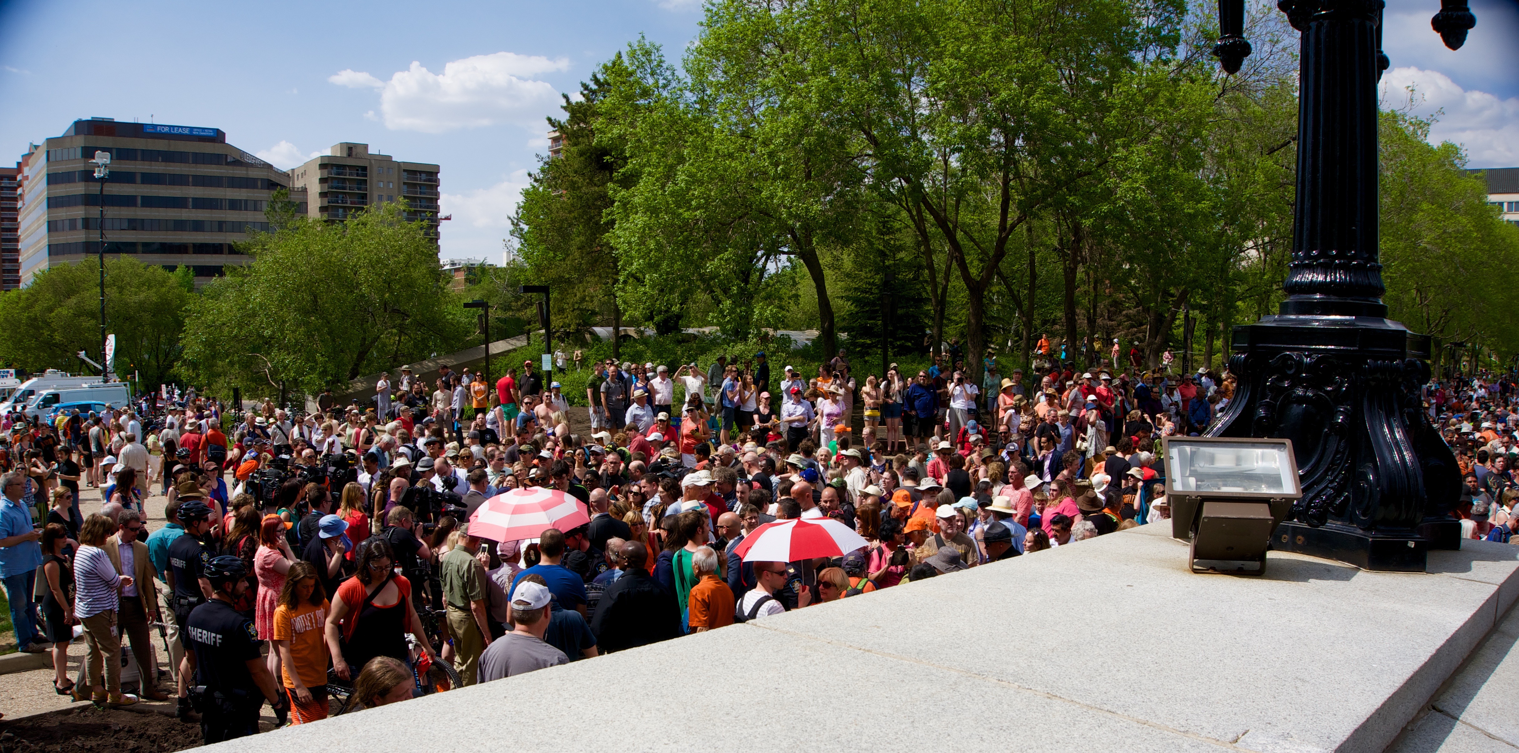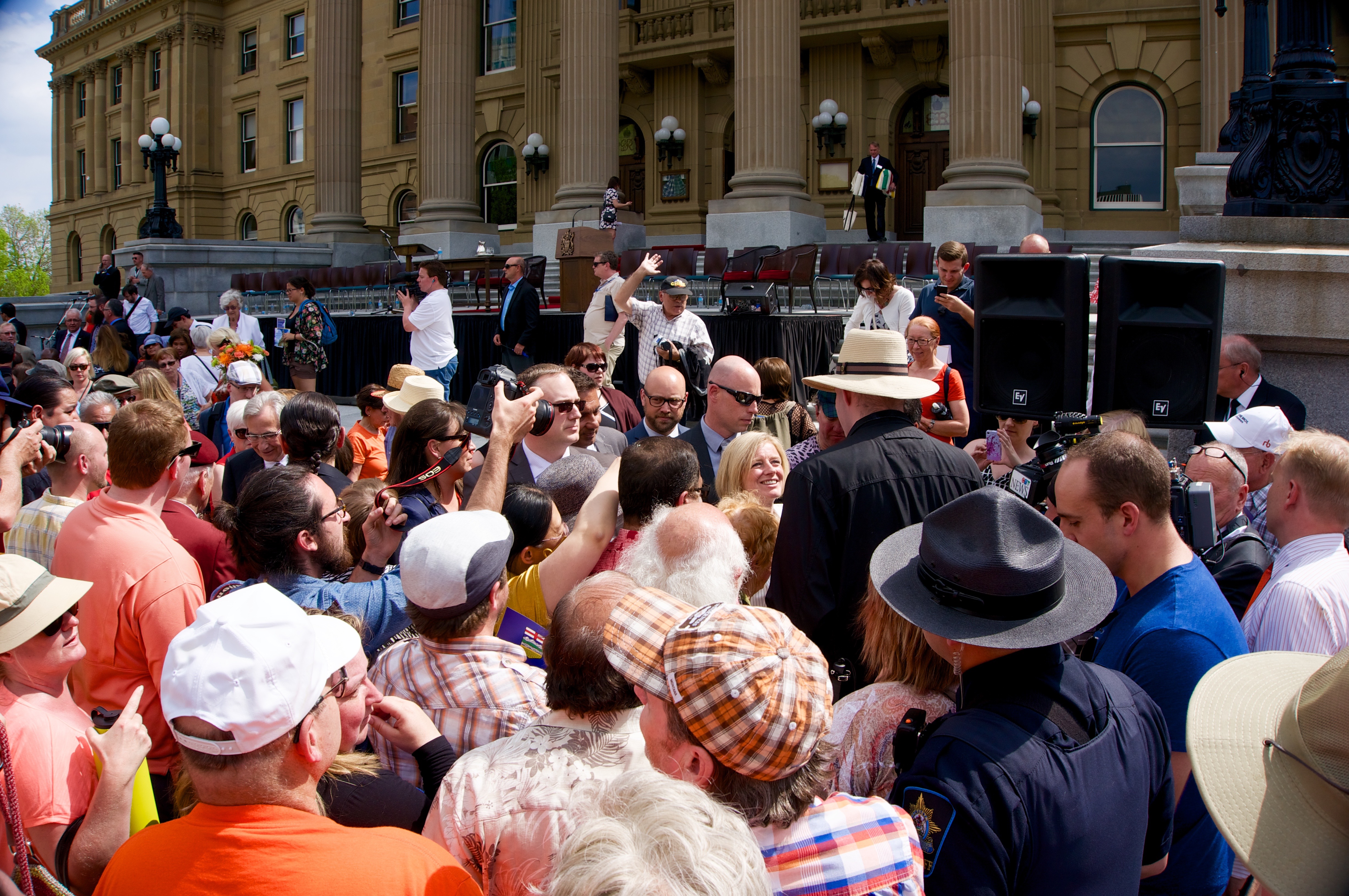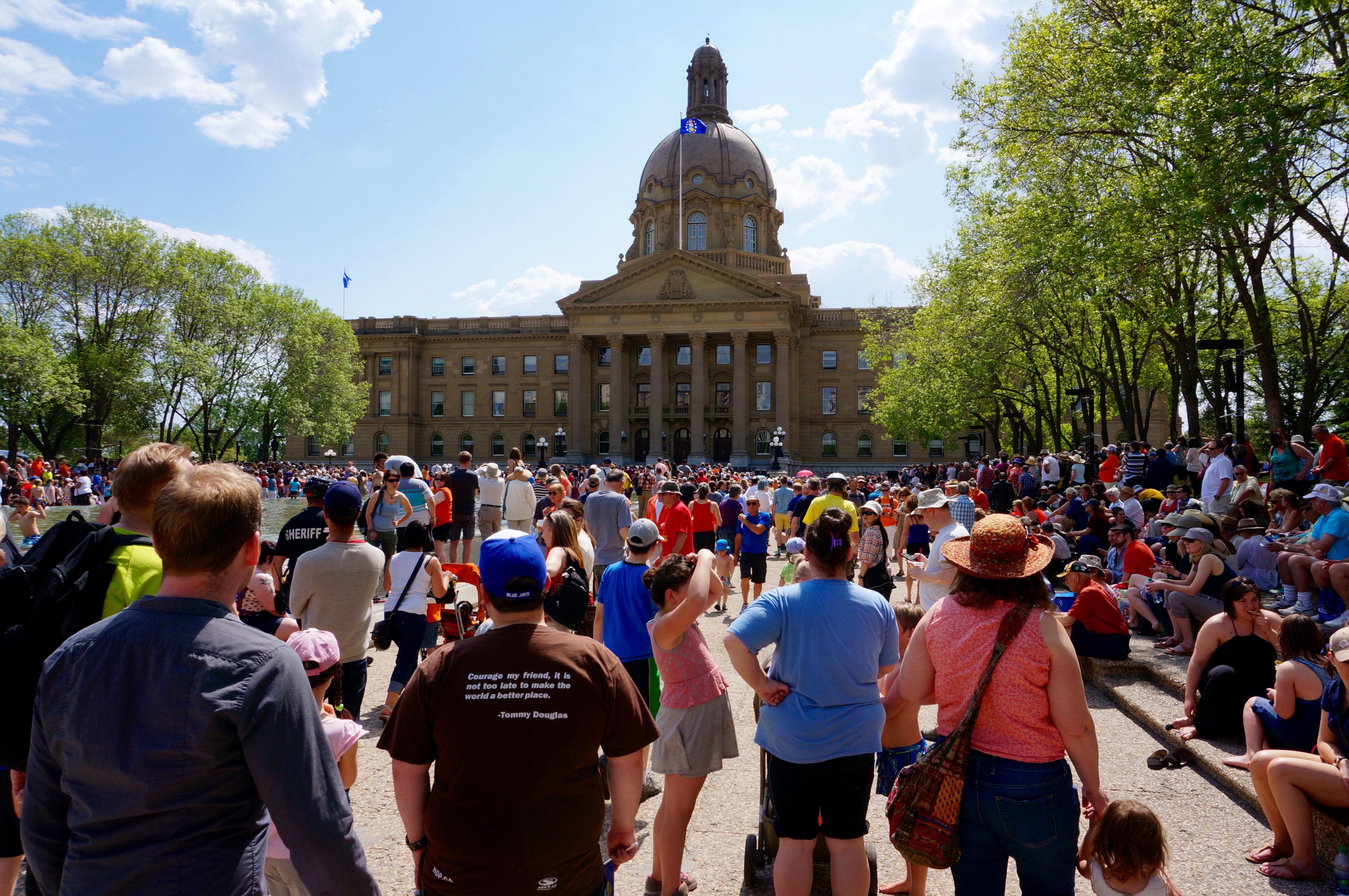 I can’t recall ever seeing so many people at the Legislature — certainly such joyous folk. In years gone by — we’re talking 1980s and 90s here — I’d witnessed mobs of placard-waving, shouting protestors who felt they’d been screwed over by the Alberta Government. These people were ticked off and — truth be known — they were devoid of hope. I could see it in their eyes.
