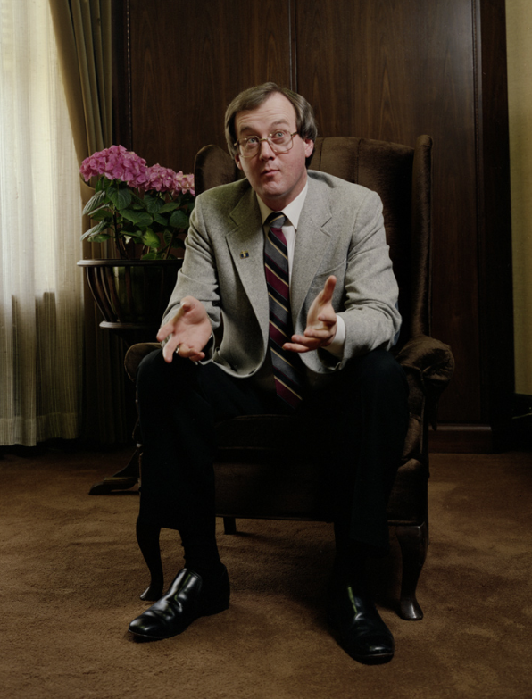 Fist-pumping Brian Mason, Alberta Minister of Transportation, has always been in the driver’s seat. Prior to becoming an MLA and Leader of the Alberta NDP, he was an Edmonton City Counsellor — and before that, a bus driver with Edmonton Transit. [39]