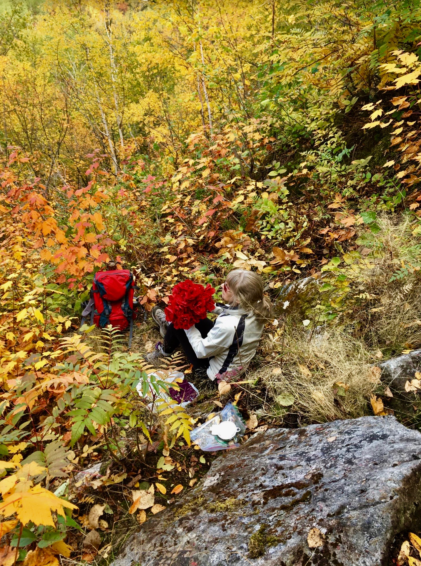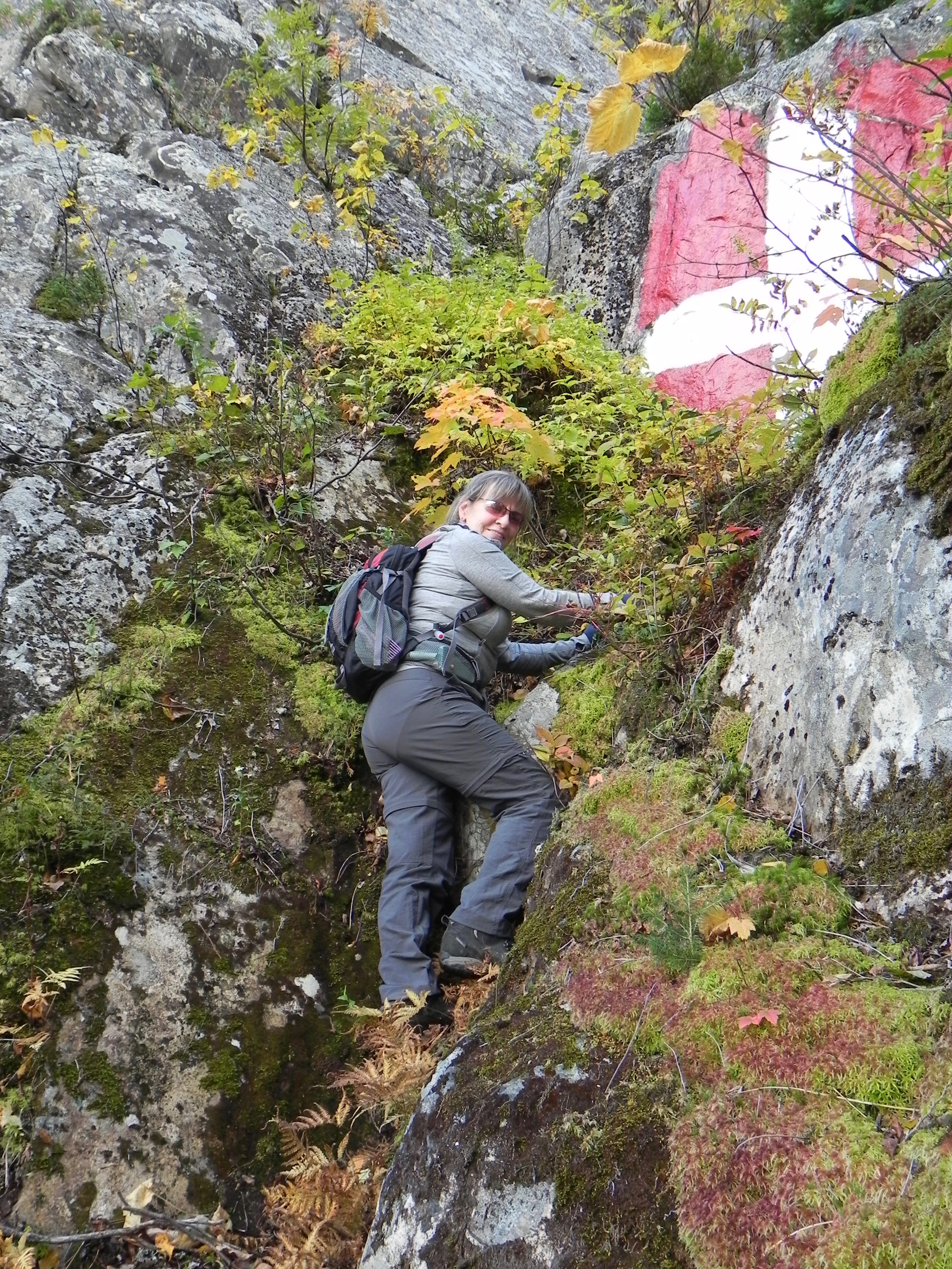 This isn’t the greatest selfie, I know. Behind the Author is Rose who began our climb by blowing loudly on a whistle. “What’s that for?” I asked. “I’m scaring away the bears,” she said. I shot back, “Don’t do that! I want to take photos of them.”