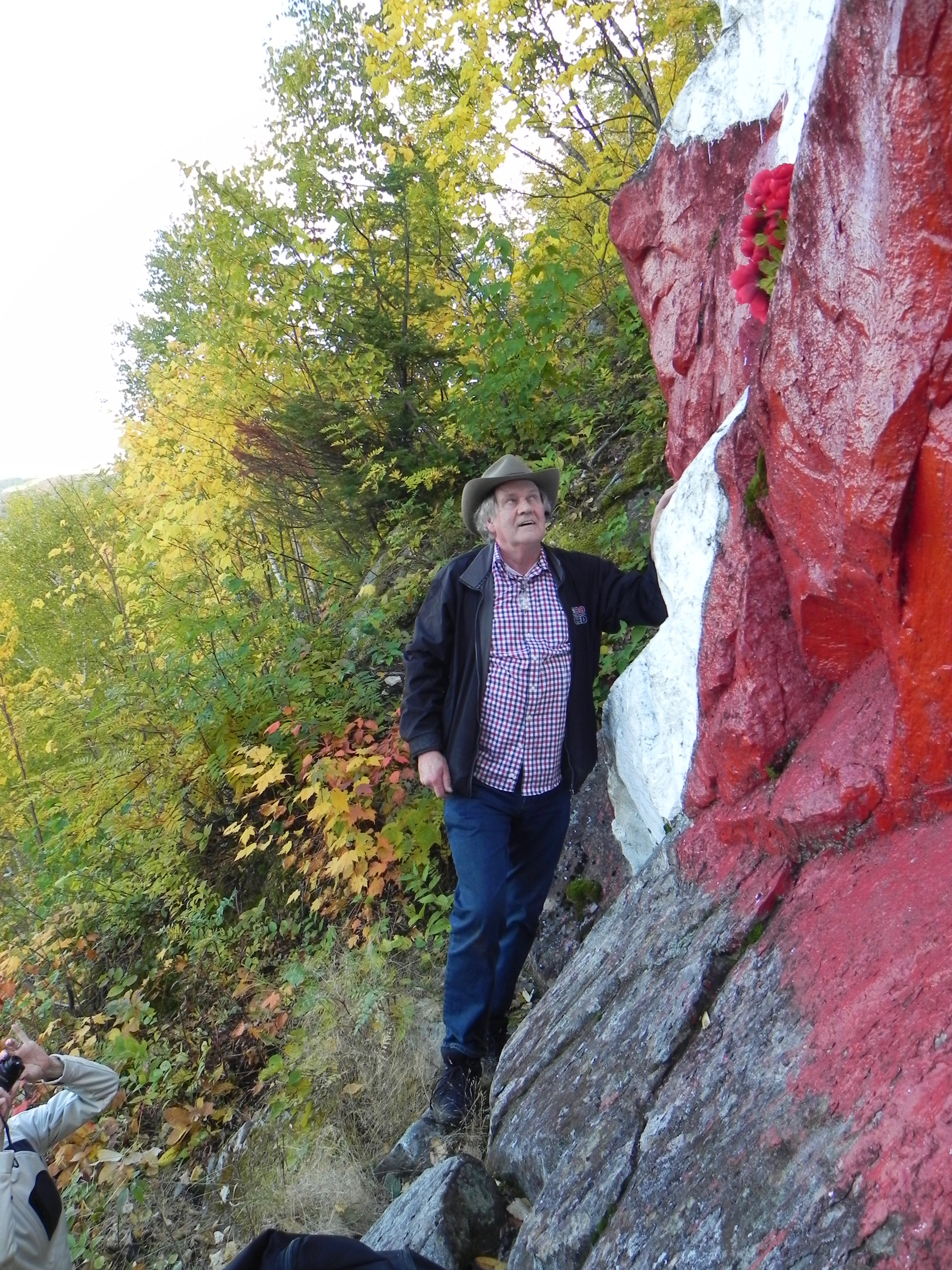 The women brought a bouquet of flowers to honour the Ramsay girls. With the help of two screws, some wire and well-placed fissures, the artificial flowers were attached to the rock face.